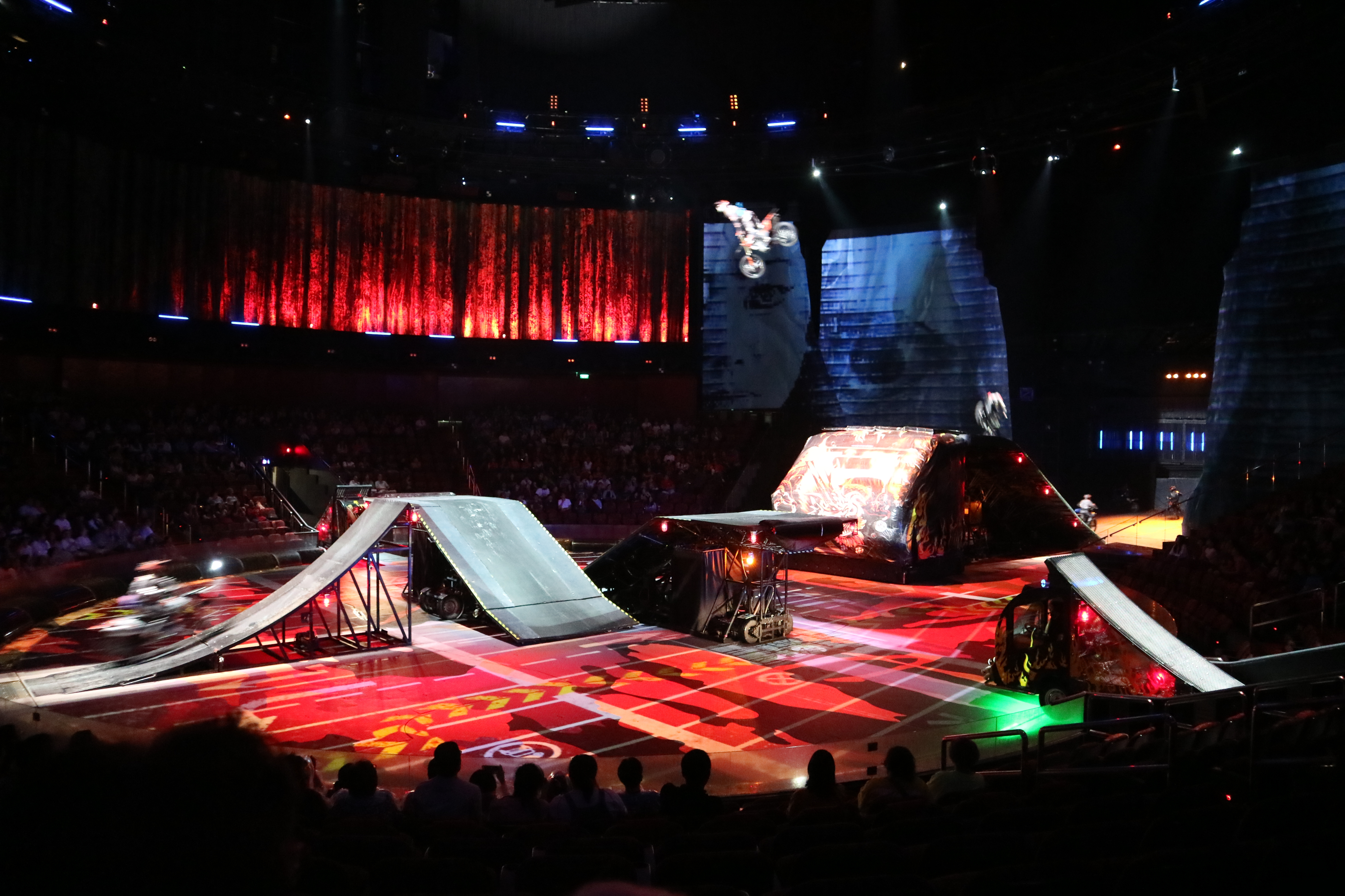 아찔한 아크로바틱과 스턴트: 수십 명의 배우들이 공중 곡예, 고난도 다이빙, 오토바이 스턴트 등 스펙터클한 퍼포먼스를 펼쳐요. 특히 수십 미터 높이에서 뛰어내리는 다이빙 장면은 관객들에게 짜릿한 전율을 선사하죠.