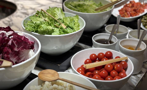 신선한 샐러드와 과일은 물론이고 크루아상과 페이스트리도 있어요.